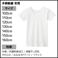 ●商品特性:半袖・抗菌防臭加工・部屋干し対応・やわらか・おなまえPマーク・フライス・ピコレース付き