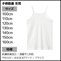 ●商品説明 綿100%でやわらかくお肌にやさしい、女の子向けの肌着。部屋干し対応でオールシーズン着用可能。学校の制服用に、体育や部活などのスポーツシーンの洗い替えに、お泊りや宿泊学習、校外学習、修学旅行など様々なシーンにおすすめです。