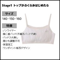 ●商品説明 成長をサポートするインナー「pied clair」のジュニア用ハーフトップ。本格的なブラは早いけど透けるのはイヤだと感じる、トップがふくらみはじめた女の子におすすめです。ワンポイントデザインなので、学校の制服用に、体育や部活などのスクールインナーとしてもお使いいただけます。