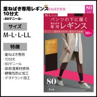 ●商品特性:重ねばき専用・10分丈・80デニール・吸放湿素材使用・静電気防止加工・デオドラント加工