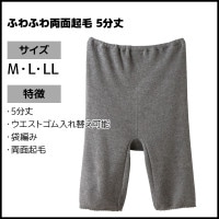 ●商品特性:5分丈・ウエストゴム入れ替え可能・袋編み・両面起毛
