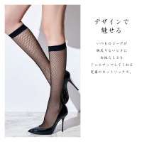 ●商品説明 どんなコーディネートにも合わせやすい、ネット柄のひざ下丈ストッキングです。