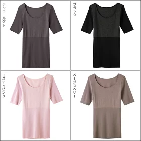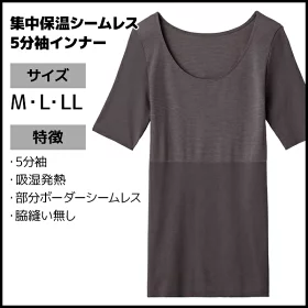 ●商品特性:5分袖・吸湿発熱・部分ボーダーシームレス・脇縫い無し