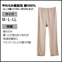 ●商品特性:腰・ひざ部分あて布付き・7分丈・ガーゼ・裏起毛・保湿抗菌加工