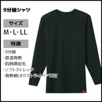 ●商品特性:9分袖・吸湿発熱・肌側微起毛・ソフトストレッチ・発熱綿(ネクストラ+)ベア天竺