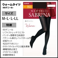 SABRINA サブリナ ウォームタイツ 透けにくい 80デニール タイツ グンゼ GUNZE[SBW53M-L]