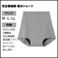 ●商品特性:約30cc対応・3層構造・完全無縫製・カットオフ・足ぐり1分丈・股上深め・綿溶着フライス