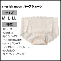 ●商品説明 【cherish moon】 締め付けるショーツはしんどいけれど、ラクを優先するとシンプルなデザインに…。そんなお悩みを軽減する、締め付けや圧迫感の少ない、きりっぱなしの総レースのショーツです。 同シリーズのハーフトップ(商品管理番号:TC6855)、ブラレット(商品管理番号:TC6892)とあわせての着用もおすすめ。