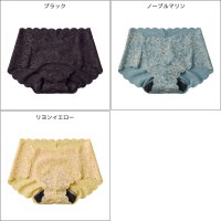 ●商品特性:羽根付き対応・総レース・カットオフレース・3層ボンディングカットオフマチ・マチ黒色・股上浅め・足ぐりノーマル・ひびきにくい・大豆イソフラボン加工