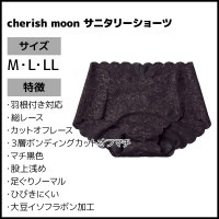 ●商品説明 【cherish moon】 締め付けるショーツはしんどいけれど、ラクを優先するとシンプルなデザインに…。そんなお悩みを軽減する、締め付けや圧迫感の少ない、きりっぱなしの総レースのサニタリーショーツです。撥水加工した生地で挟んだ3層のマチで、漏れの不安を軽減します。 同シリーズのハーフトップ(商品管理番号:TC6855)、ブラレット(商品管理番号:TC6892)とあわせての着用もおすすめ。