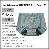 ●商品特性:吸水量約25ml・マチ部分7層構造・マチグレー色・ハンモックマチ・マチ部抗菌防臭・股上浅め・足ぐりノーマル・総レース・カットオフレース・ラッセルストレッチレース・ひびきにくい・大豆イソフラボン加工