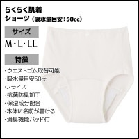 ●商品特性:ウエストゴム取替可能・吸水量目安50cc・フライス・抗菌防臭加工・保湿成分配合・本体に名前が書ける・消臭機能パッド付