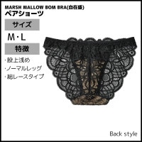 ●商品説明 総レースでセクシーな印象に。ヒップ部分にゴムを使用していないので、穿き心地が軽く、ボトムにショーツのラインが響きにくい。 単品でのコーディネートも、ペアのマシュマロボムブラ(商品管理番号:JB3027P)と合わせてもおすすめ。