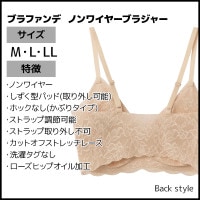 ●商品特性:ノンワイヤー・しずく型パッド(取り外し可能)・ホックなし(かぶりタイプ)・ストラップ調節可能・ストラップ取り外し不可・カットオフストレッチレース・洗濯タグなし・ローズヒップオイル加工