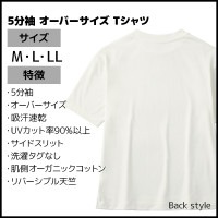 ●商品特性:5分袖・オーバーサイズ・吸汗速乾・UVカット率90%以上・サイドスリット・洗濯タグなし・肌側オーガニックコットン・リバーシブル天竺