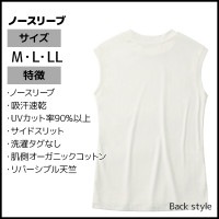 ●商品特性:ノースリーブ・吸汗速乾・UVカット率90%以上・サイドスリット・洗濯タグなし・肌側オーガニックコットン・リバーシブル天竺